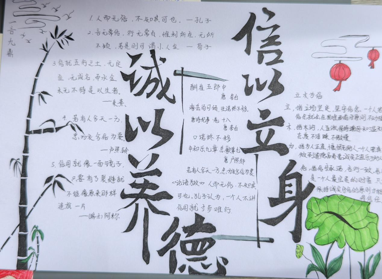 学队员们用画笔和文字展现了他们对诚信的理解和感悟,营造出浓厚的诚信教育氛围。